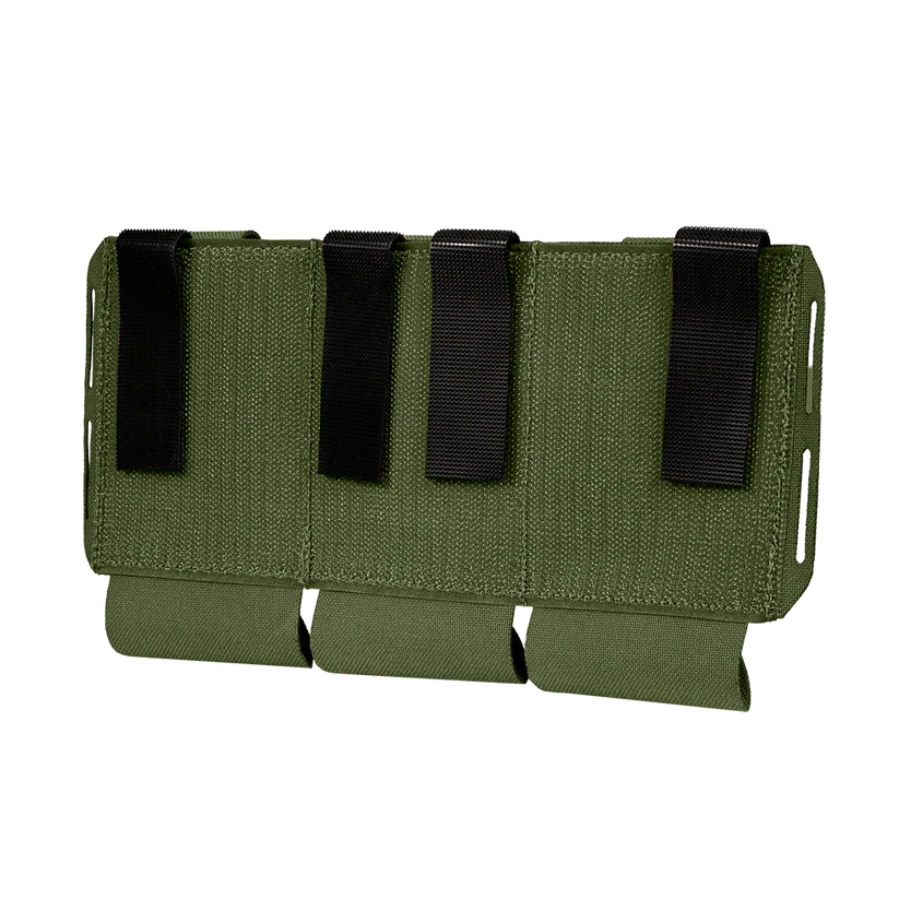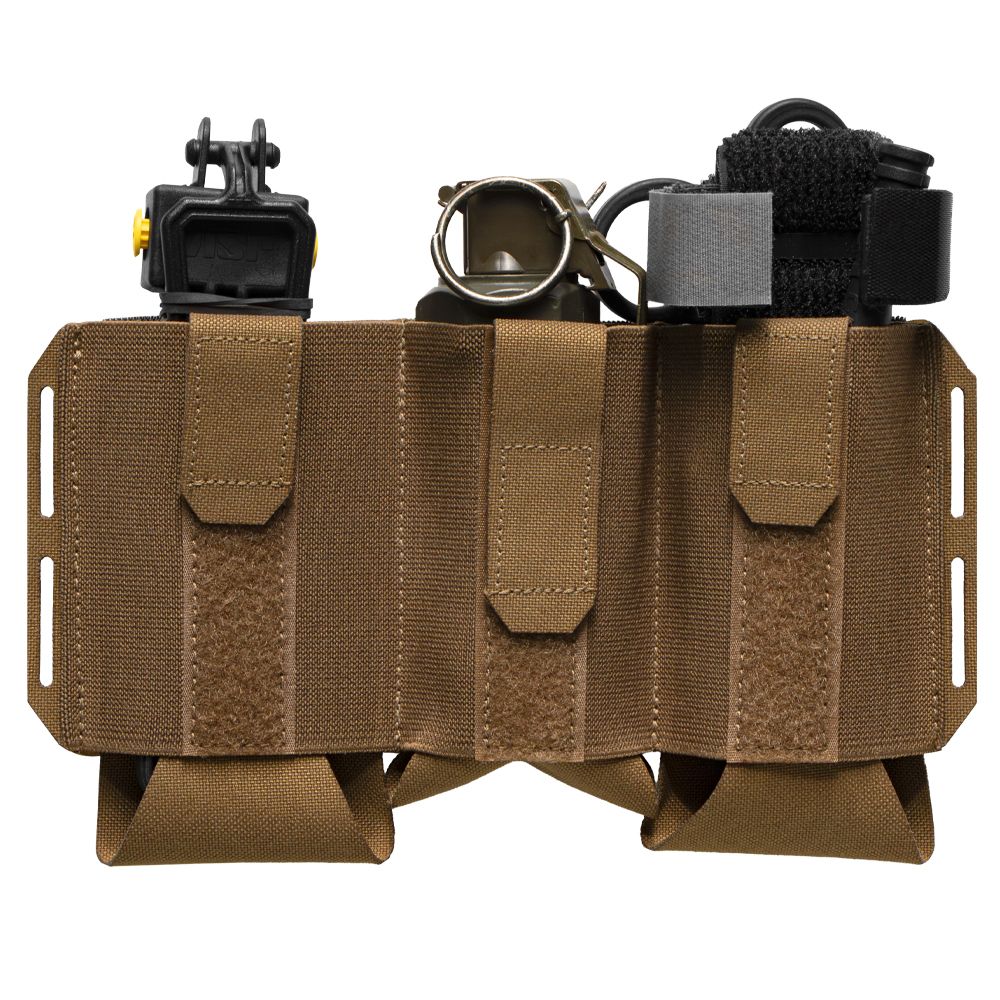 Das Condor VAS FLEX Placard besteht aus robustem, elastischem Gurtband, das im leeren Zustand flach anliegt und sich ausdehnt, um bis zu drei AR/M4-Magazine oder andere wichtige Ausrüstung sicher zu halten.