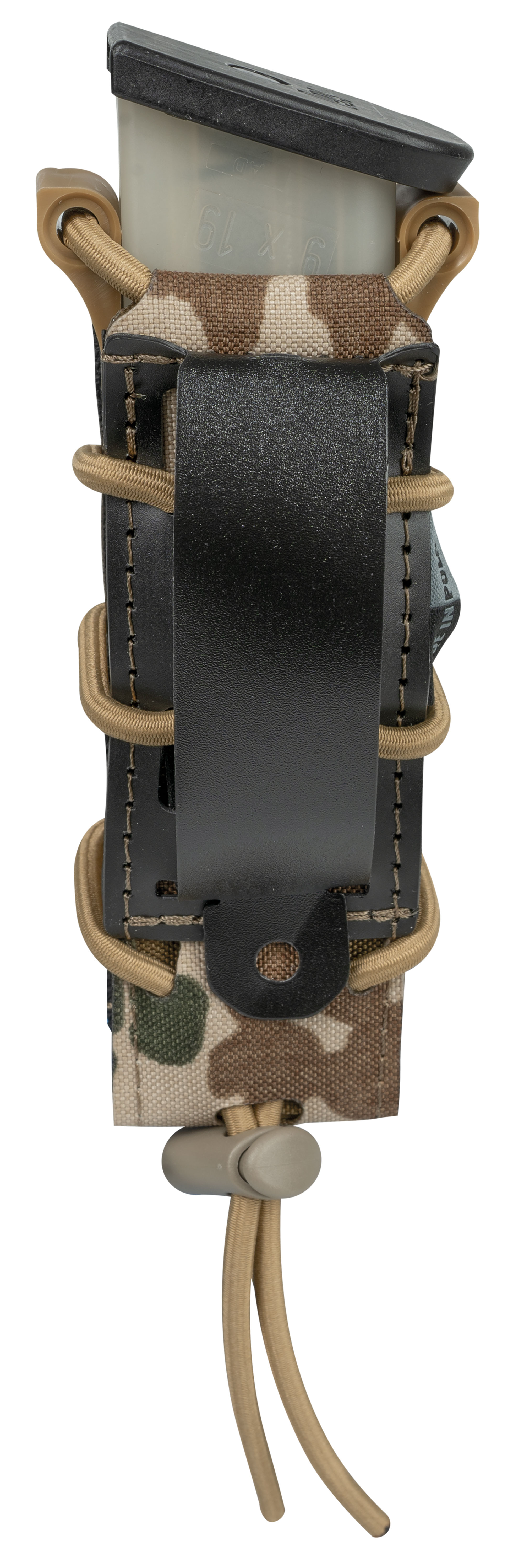 Durch die speziell geformten Polymer Seitenteile lasen sich Magazine schneller ziehen und auch wieder problemlos zurückstecken. Der Fast Pouch kann durch den Bungee-Cord und einem Kordelstopper eingestellt werden.
