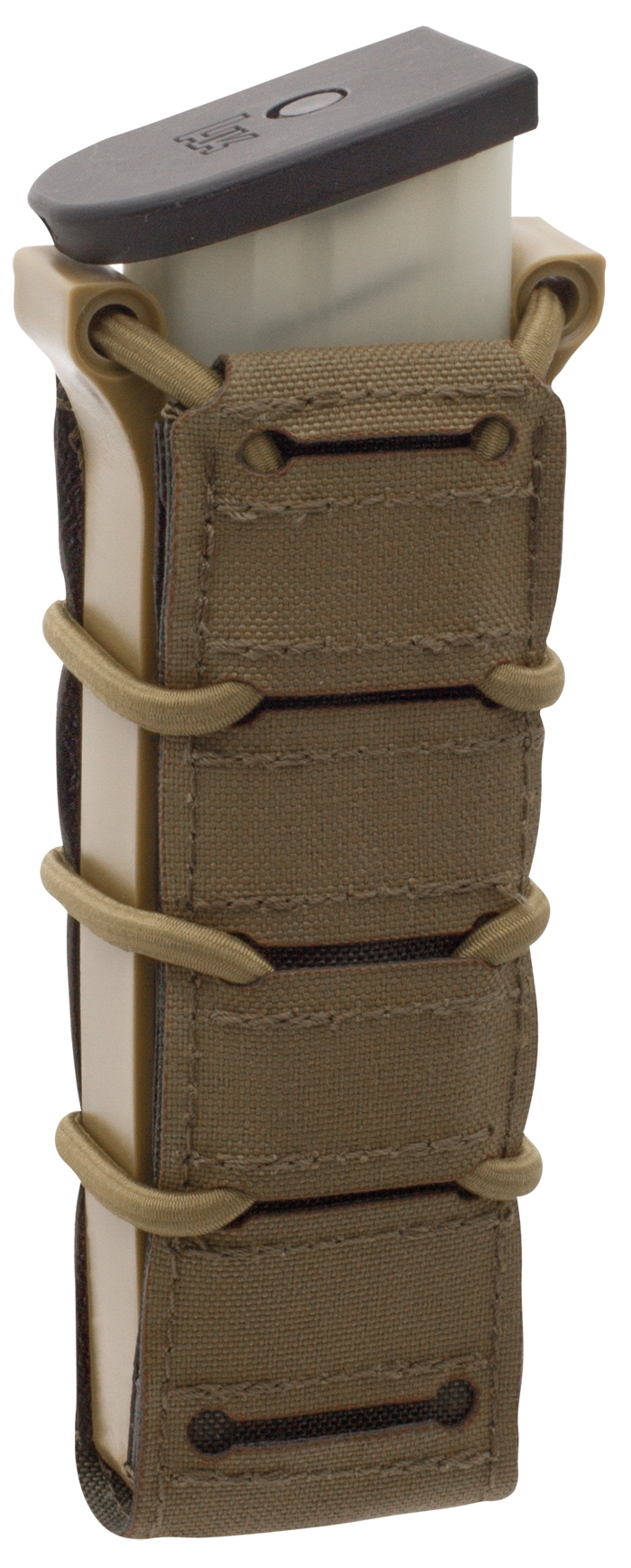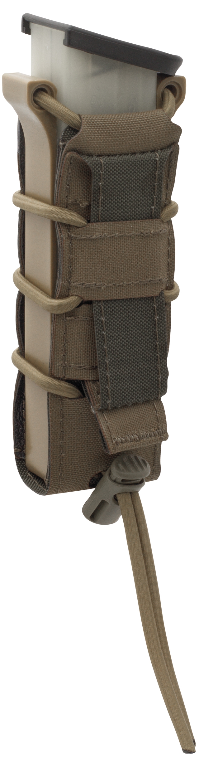 Durch die speziell geformten Polymer Seitenteile lasen sich Magazine schneller ziehen und auch wieder problemlos zurückstecken. Der Fast Pouch kann durch den Bungee-Cord und einem Kordelstopper eingestellt werden.