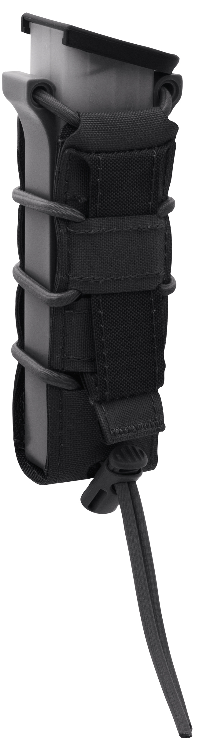 Durch die speziell geformten Polymer Seitenteile lasen sich Magazine schneller ziehen und auch wieder problemlos zurückstecken. Der Fast Pouch kann durch den Bungee-Cord und einem Kordelstopper eingestellt werden.